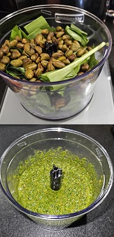 Voici une variante de pesto un peu plus originale que le traditionnel pesto de basilic. Un pesto à l’ail des ours très parfumé. Je le présente ici en deux variantes. Pignons ou pistaches.
